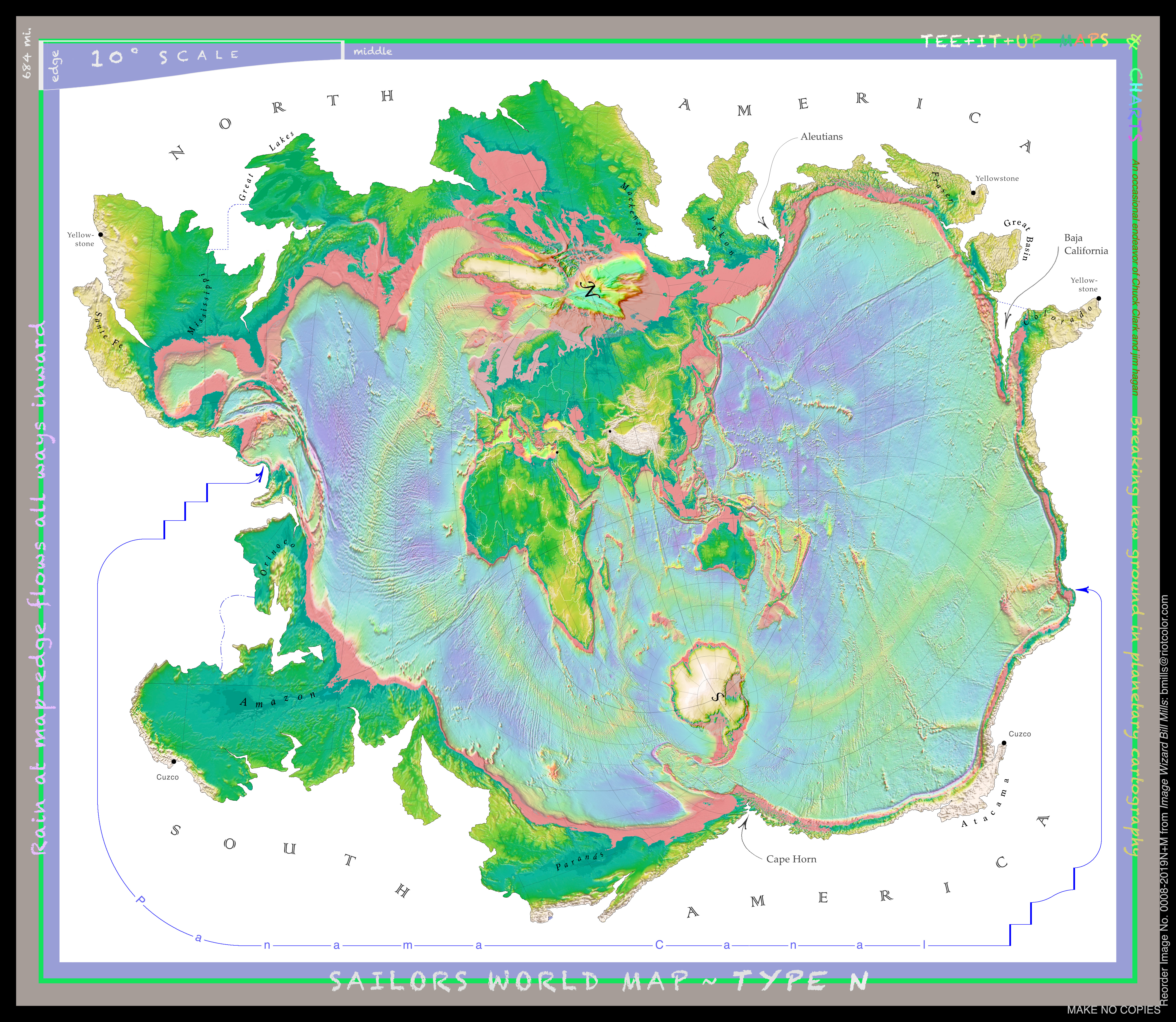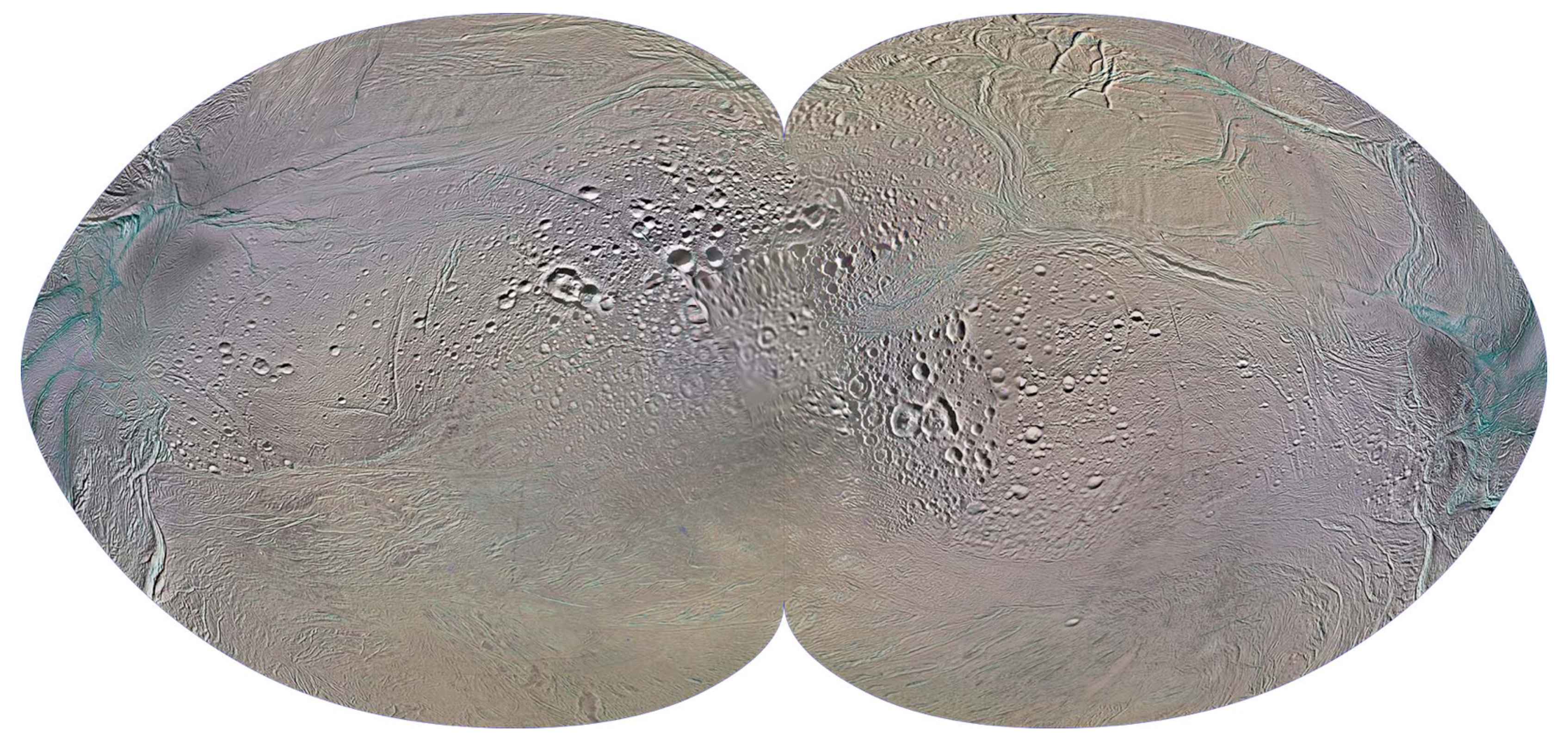 Using Enceladus as an extremely simple example, the premise of this poster is to show how CSNB maps may function as Maxwellian graphical stress diagrams [see upper left]. The constant gravitational pull of Saturn on the ice-shell moon causes extremely active shear cracks at the south pole. The opposite pole holds the oldest (most cratered, most inactive) terrain. The four-map column on the right shows results when the map-interruption line is placed at various critical longitudinal planes. Note the colored lines in the 3-D sketch on the left: the red line is the plane of maximum outward gravitational pull, “high tide”; the blue line is “low tide”; the green and magenta lines are inflection planes. These four lines are the edges of the four maps in the righthand column. The abstract for this poster is here.