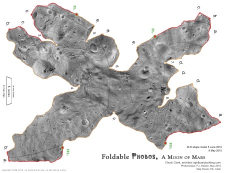 I used 2 A4 120g bond sheets per map ,gluing in them the center and for Deimos the scale was 1/111000 , the newer Phobos is 1/175000, i’d like a new Deimos at this later scale. I’m evaluating Eros as next project.
