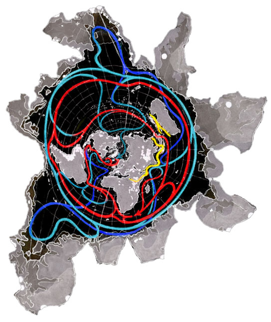 What’s that you say? A little hard to follow things — especially the play of Antarctica’s gulfs — at map edge? And what, around the periphery, are those trails of white dots?